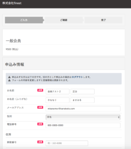 「会員申し込み」ボタンを押しますと、下記のページへ移動しますので、「申し込み情報」をご入力ください。