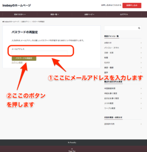 新しいパスワードの送り先のメールアドレスを入力して、「パスワードの再設定」のボタンを押すと、新しいパスワードが届きます。